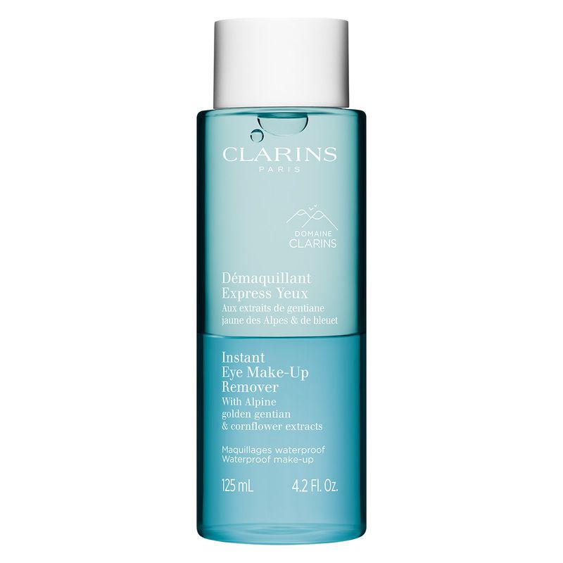 Questo struccante express per gli occhi si rivolge a chi ama un make-up intenso o waterproof e desidera prendersi cura del proprio sguardo. La sua formula bifase senza effetto grasso elimina con delicatezza il make-up waterproof. È arricchito con estratto di genziana maggiore delle Alpi bio raccolta nel cuore del Domaine Clarins e con estratto di fiordaliso per lenire la pelle del contorno occhi.